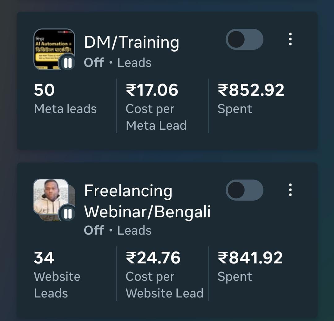 Ads সেটআপ করার পর সাধারণত ২৪–৪৮ ঘণ্টার মধ্যেই লিড আসা শুরু হয়। তবে ফলাফল নির্ভর করে আপনার ব্যবসার ধরন, অফার এবং মার্কেট কম্পিটিশনের উপর।